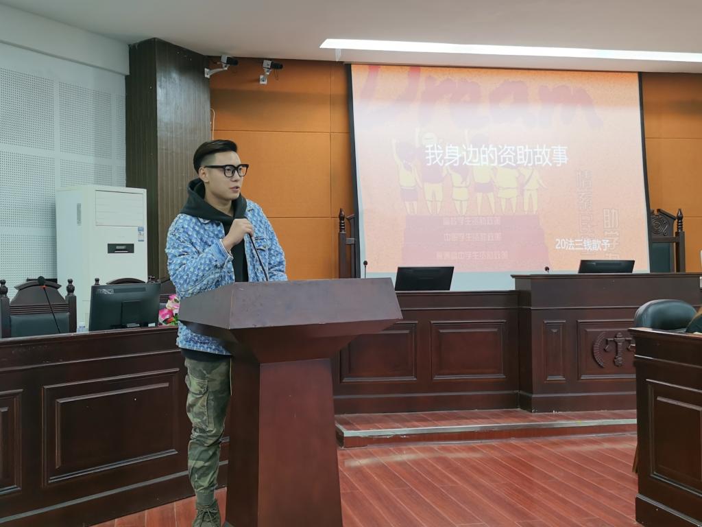 10月19日下午,法学院于致远楼202教室举办“我身边的资助故事”演讲比赛。本次比赛由法学院辅导员宋元烨、陈玲及团总支与学生会主席曾碧芳担任评委,学习部部长刘柯柯主持。