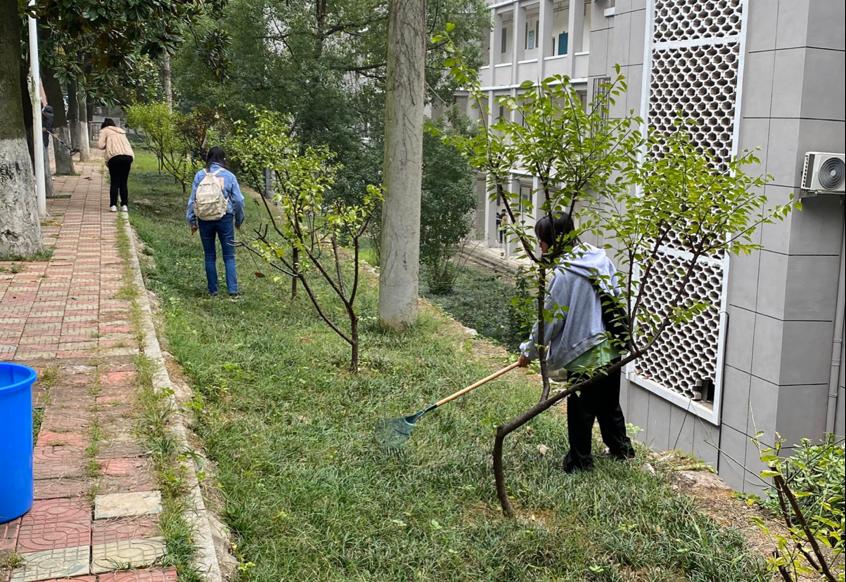 10月26日,法学院21级法学三班的同学们在生活委员的带领下于若谷楼前的马路旁开展了“守望花田”活动。