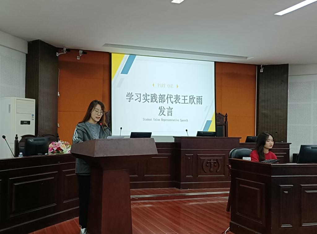 法学院学习实践部代表王欣雨向各班委详细介绍了学风建设月的活动安排,并号召各班踊跃参与即将开展的各项活动,增强班级凝聚力。