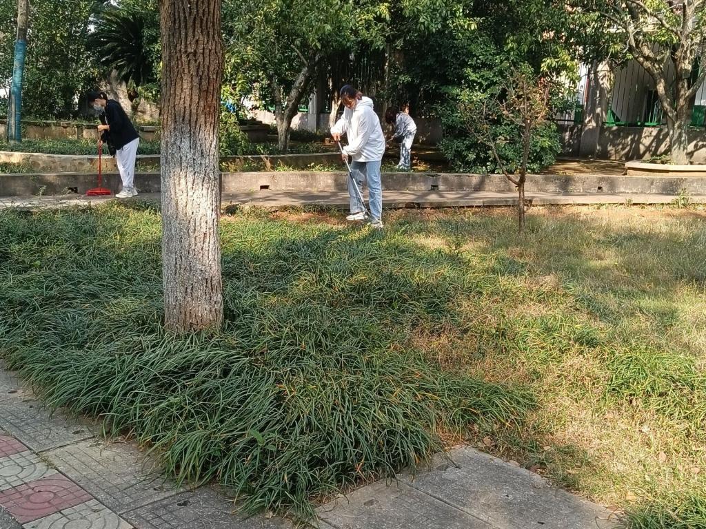 为了弘扬中华传统劳动精神,11月13日上午,21级法务班于若谷楼前的花坛开展了“守望花田”活动。 在这次活动中,同学们用扫帚、耙子和铲子让原本铺满落叶的地面和花坛变得干净整洁。纵使头顶的阳光炽热难耐,同学们依旧不辞辛苦、毫无怨言,用双手让花坛的面貌焕然一新。 经过本次活动,同学们的劳动素养和道德品质得到了提高,校园的环境也变得更加干净整洁。