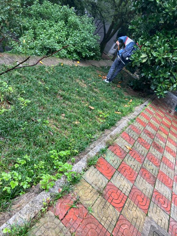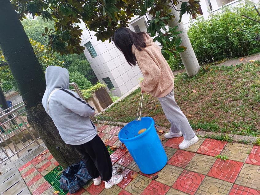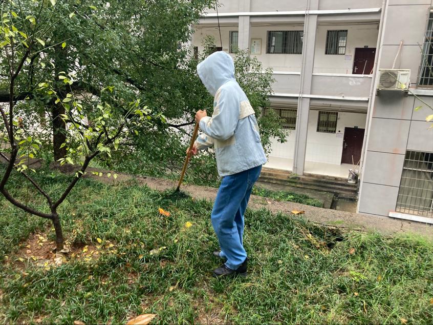 同学们准时地到达指定区域,按照分配好的任务分工合作,有的同学用耙子耙出枯枝烂叶,将花田清理干净,其他的同学则拿着钳子将耙出来的枯枝烂叶与白色垃圾夹进垃圾桶内。在同学们认真配合下,花田再次变得整洁干净。