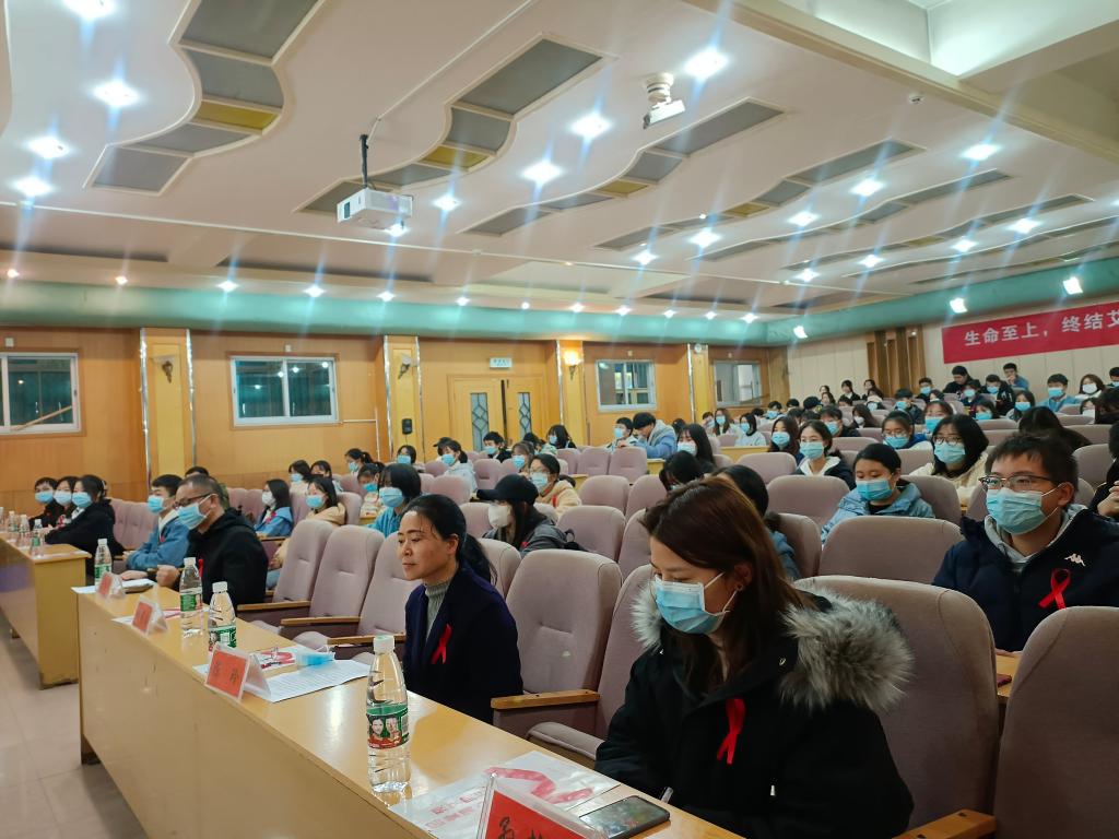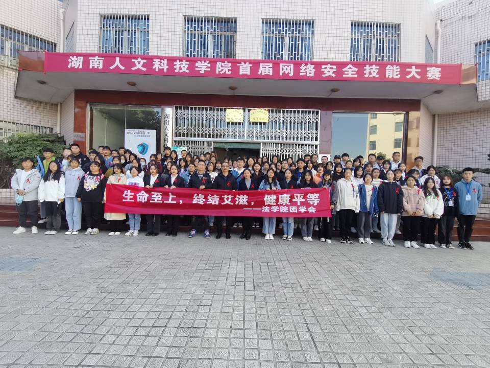 12月1日上午,部分青年志愿者配合娄底市疾控中心于娄星广场摆点宣传。中午,法学院于养根楼举办了防艾活动的启动仪式,法学院党总支书记肖兵明、辅导员陈玲、学生代表王鑫雨等人发表了讲话,呼吁大家在人际交往中保持理性,了解艾滋病知识及危害,在日常生活中养成健康文明的生活习惯,积极加入防艾队伍,共建无艾世界。