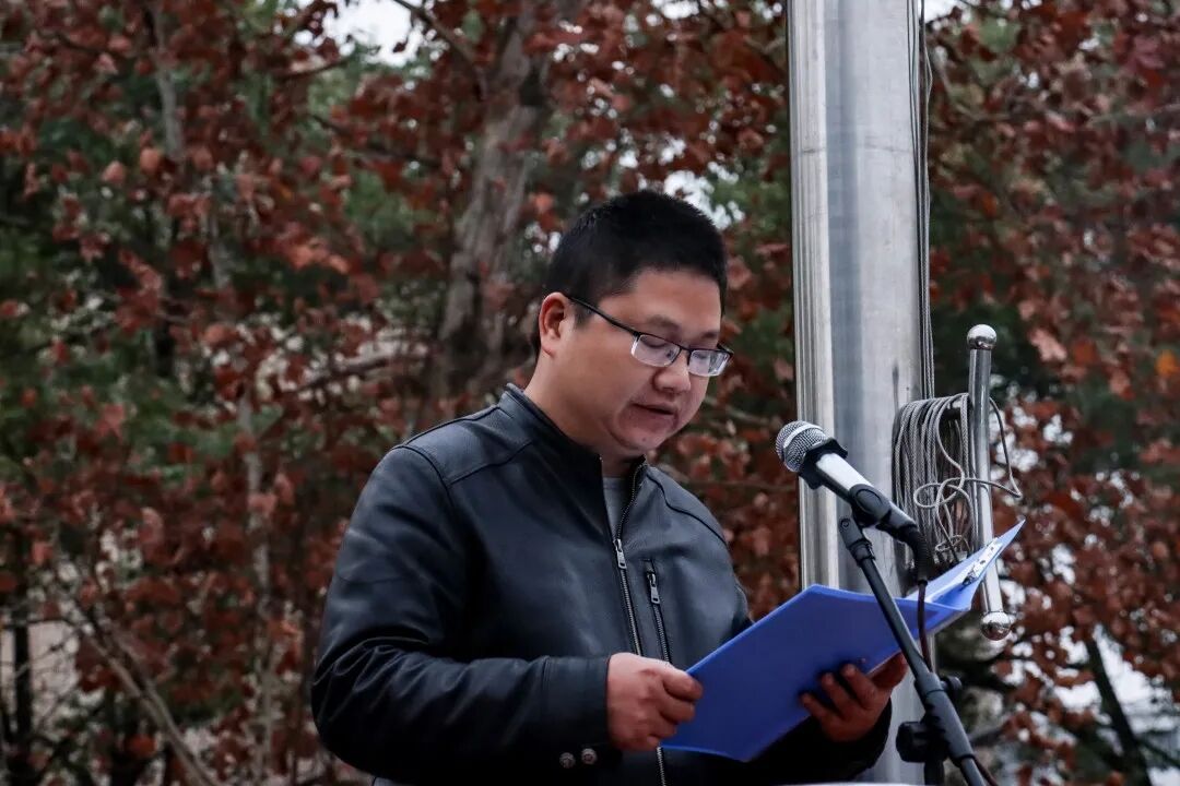 在庄严肃穆的国歌声中,鲜艳的五星红旗冉冉升起。随后,学生代表寇雨欣同学通过回顾中国的屈辱历史,呼吁同学们应该直面历史、把握当下、面向未来。同时,她号召同学们要学党史、感党恩,明大德、立大志,成为新时代祖国的栋梁,为祖国的蓬勃发展注入新鲜血液。