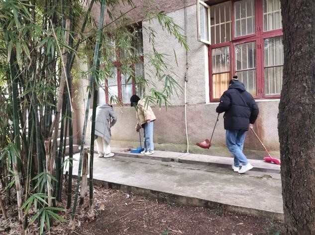 今日阳光正好,微风不燥,同学们在冬日的暖阳之下开始了守望花田。同学们用扫帚、耙子和铲子让原本落满残花败叶的地面和花坛变得干净,戴上手套使水沟中的污物和花坛里的杂草无迹可寻,偶尔冒出的片砖碎石也被同学们清理。同学们的辛勤劳动换来了校园的整洁,打扫之后的花坛在阳光的照耀下格外赏心悦目。