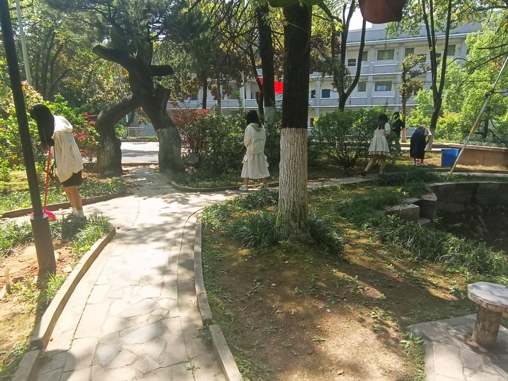 同学们不喊苦不喊累,在劳动中挥洒汗水,有效地锻炼了自身,展现出独特的青春风采,助力建设美丽的人文校园。
