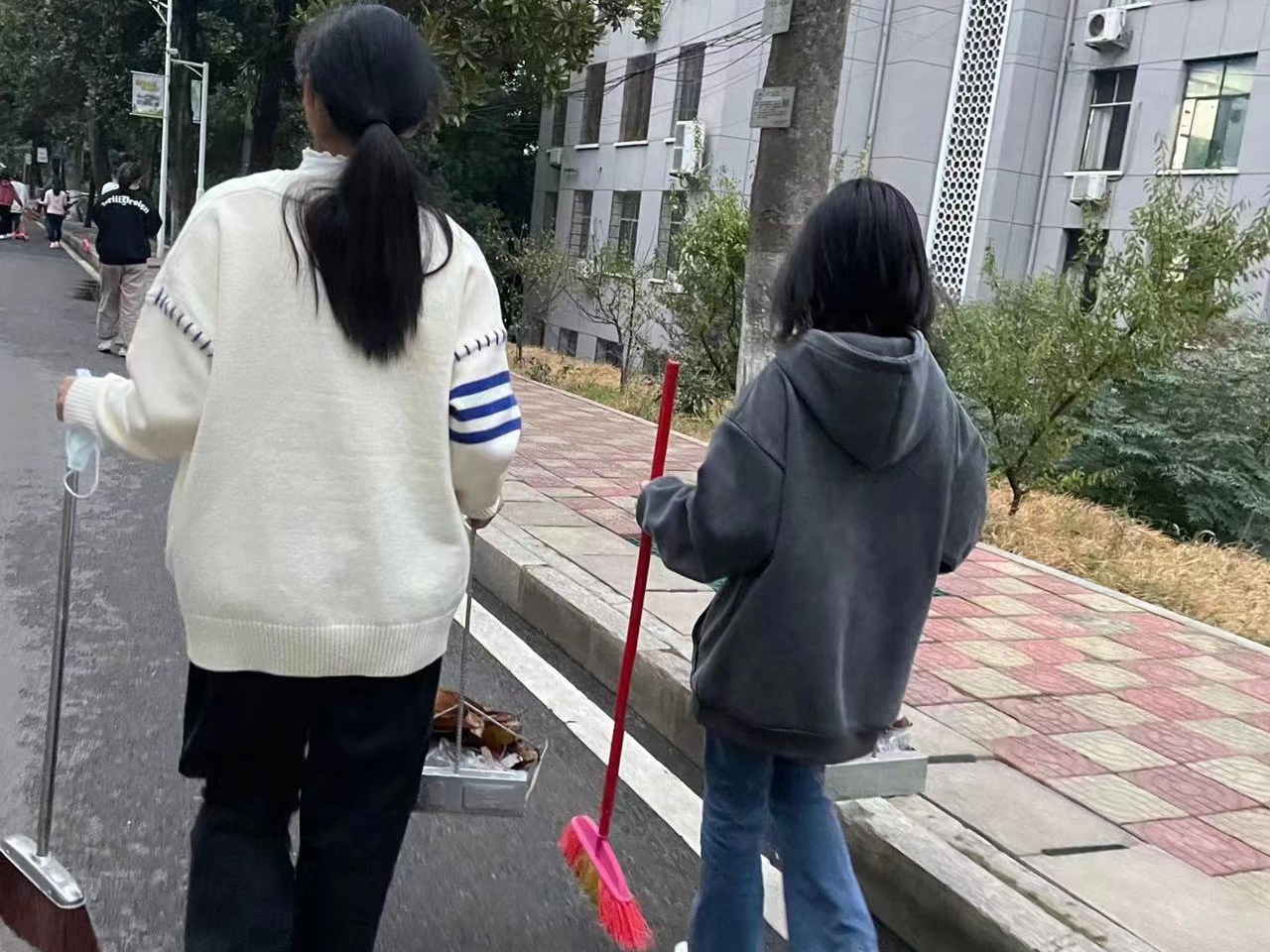 近日天气闷热,同学们即便汗流浃背,却依然以饱满的热情投入到此次活动。在这次实践中,同学们用扫帚将沟槽中的纸屑、落叶等垃圾清理干净,并用钳子仔细地夹出花坛内的烟头、塑料袋等细小的垃圾。除此之外,同学们还积极展开了有关校园环境保护的讨论,加强了全体学生的卫生意识。