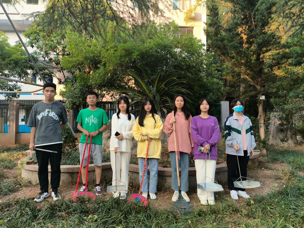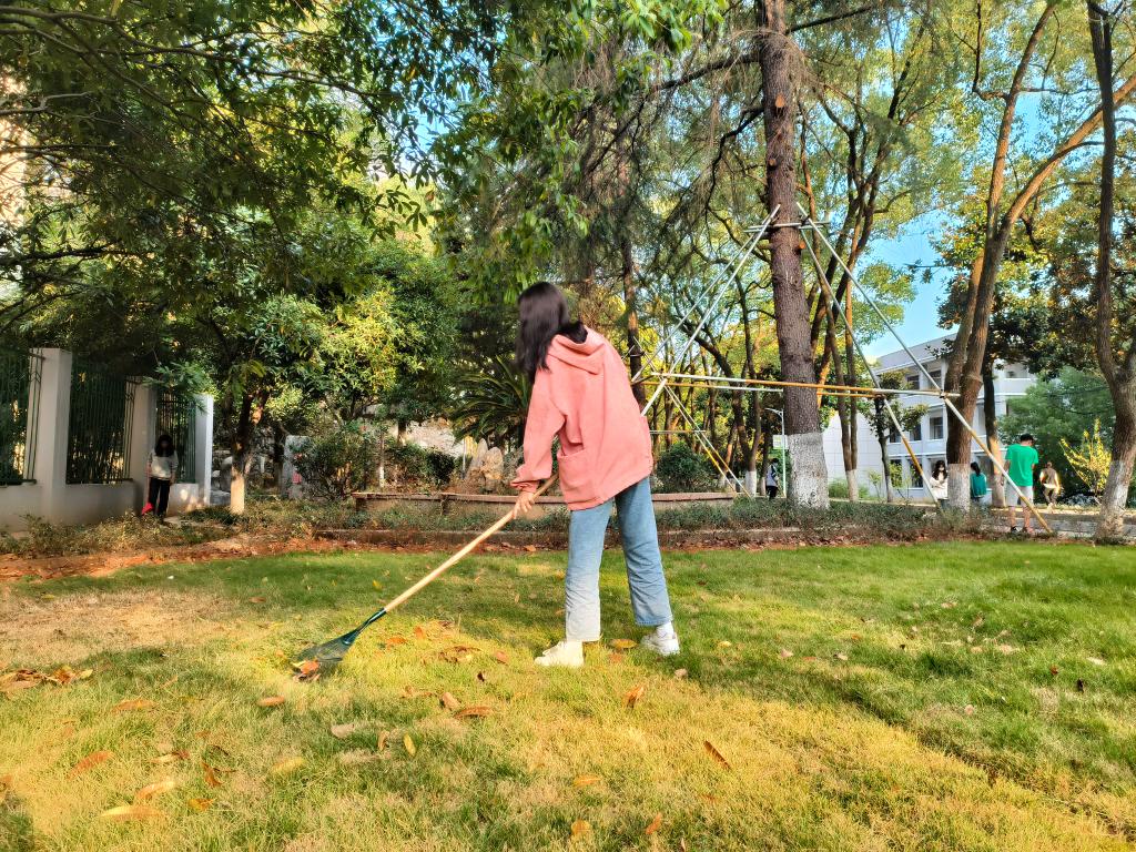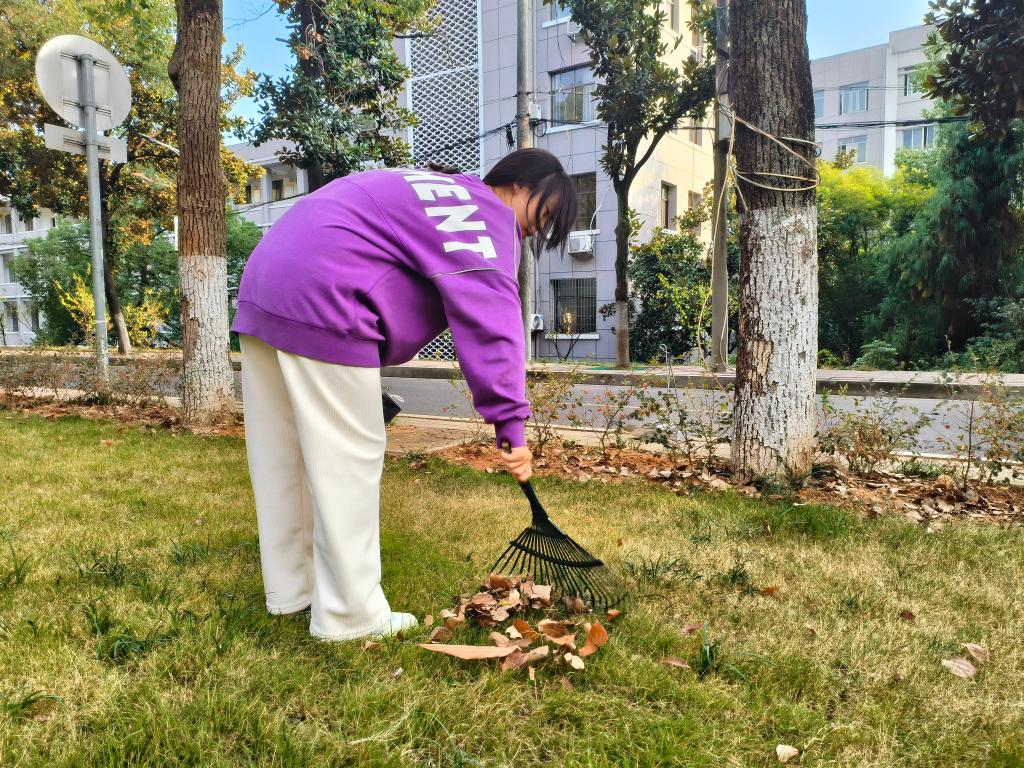 同学们积极参与,携带劳动工具准时到达指定地点进行劳动实践活动。同学们挥舞着扫帚干劲十足,在一推、一撮间,落叶渐渐被聚拢,藏在草丛中的塑料袋被同学们细致地清理出来。不久,花田焕然一新,恢复了原有的模样。
