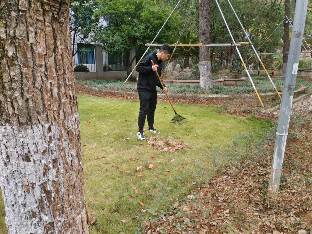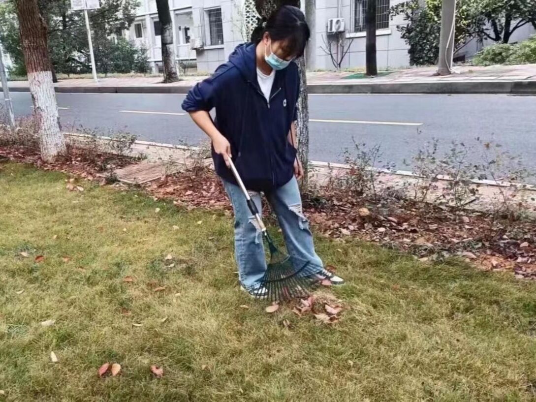 入冬的清晨,露珠依附着小草,大树在寒冽微风的拂面下悠然地散落着金黄枯脆的落红。同学们朝气蓬勃,迎着凌冽的冬风,拿上扫帚、簸箕、垃圾桶,去打扫花田。同学们不辞劳苦,认真细致地清理着落叶,扫帚与落叶相互摩擦而产生的沙沙声,带走了冬日的寒冽。经过同学们半个多小时的努力,枯枝落叶已被打扫干净,一片洋溢着生命气息的翠绿草坪映入眼帘。