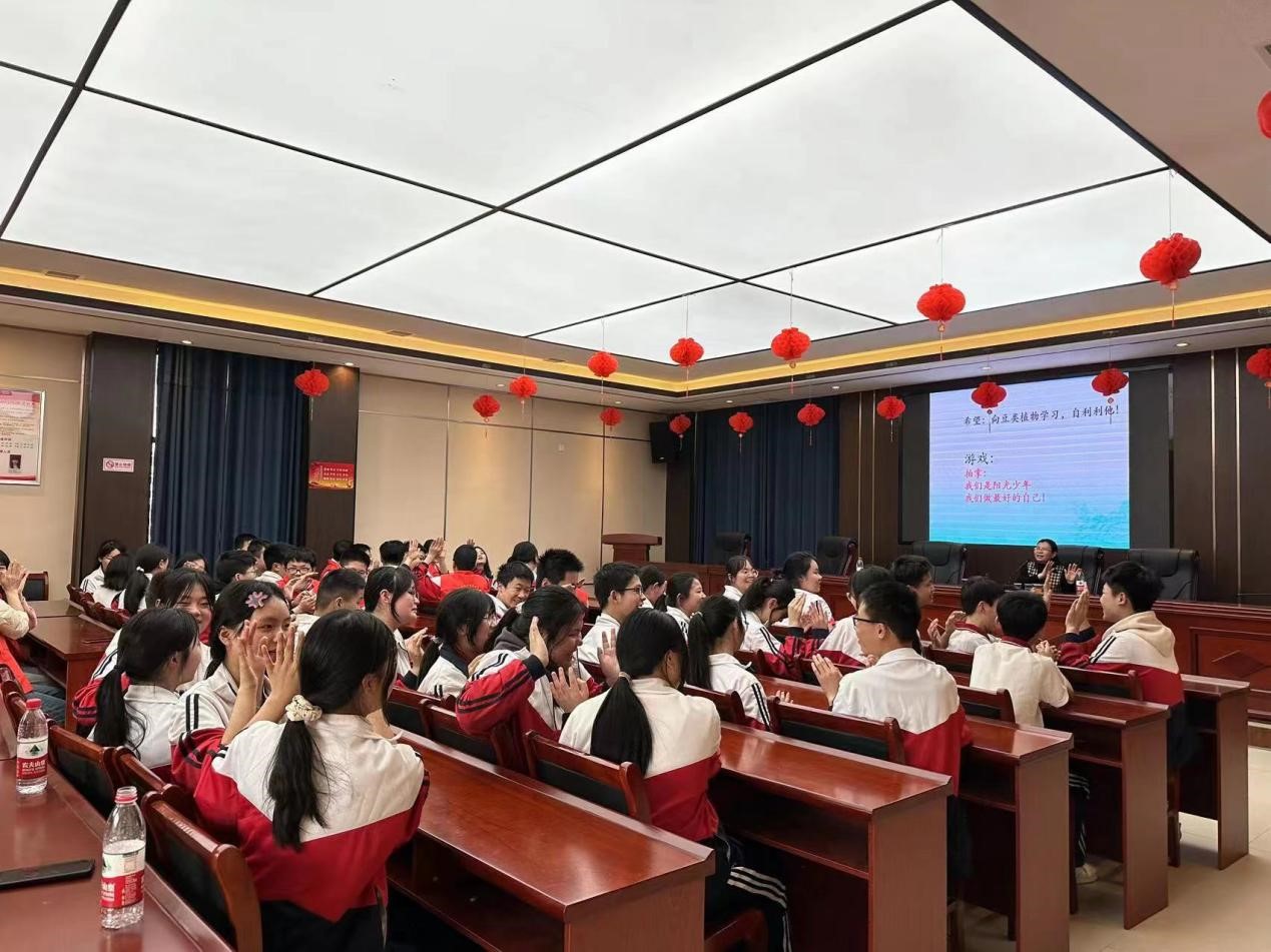 活动第一个环节,吴会长从认识情绪、改变认知以及心智成长三方面开展讲座。她指出:情绪是生命能量。她用四种不同颜色的饮料直观地向同学们讲解了情绪与生命状态表现的关系,并教导同学们应放大心量,清理自身负面情绪,清除他人负面评价。接着,吴会长让同学们伸出双手,拥抱自己、拥抱同学,鼓励同学们团结友爱,用关爱、包容的心对待自己和他人。最后,吴会长带领同学们以拍掌的游戏形式放松身心、增加信心,现场气氛十分热烈。