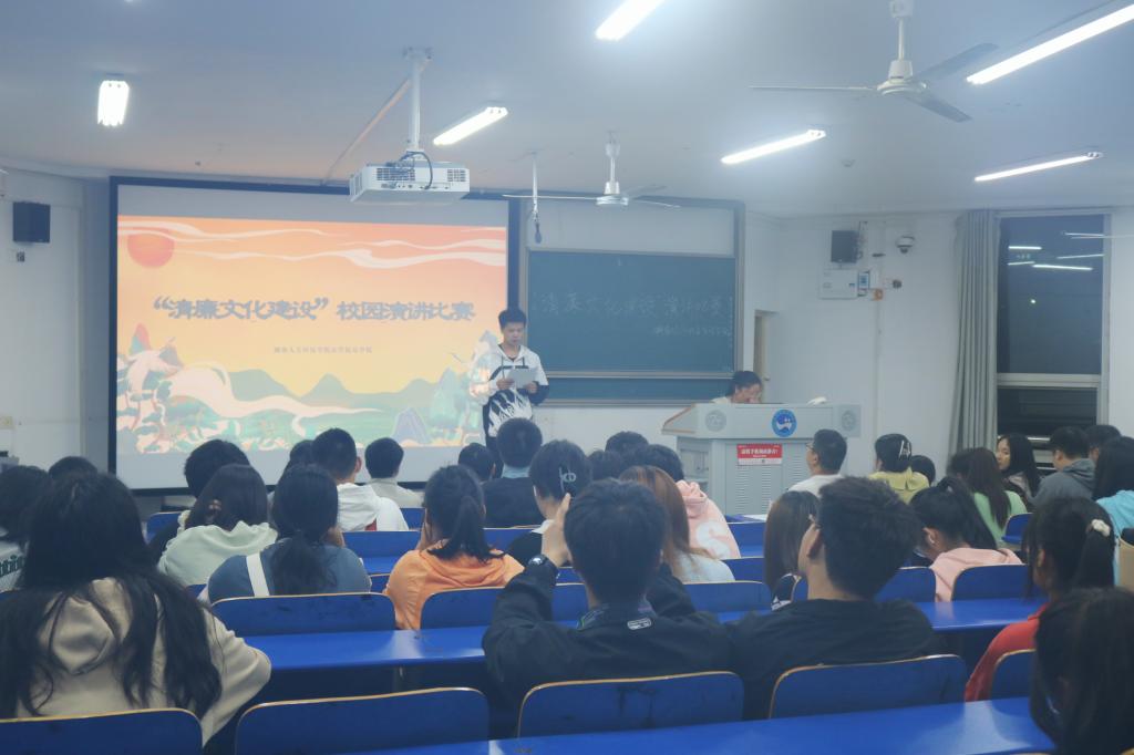 4月11日晚,法学院于致远楼301教室举行“清廉文明建设”校园演讲比赛。本次比赛由法学院综合办公室青年志愿者李黄杰主持,法学院党总支副书记刘景春、学工办主任陈玲、辅导员廖俊宏、袁嘉炜、羊哲思以及团总支与学生会主席团部分成员担任评委。