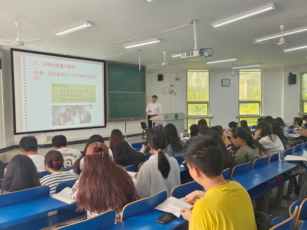 邹鹰是法学院的外聘教授,本学期承担了21级社工专业课程教学。在本次“调查研究”的专题讲座中,邹鹰教授将晦涩难懂的知识点以通俗易懂、幽默风趣的方式向同学们展开叙述。他从调查研究的概念入手,以“优抚对象调查问卷”为例,向同学们全方位展示了问卷设计的原则与步骤。他由浅入深地讲述了调查资料的收集方法和调查的组织与实施过程,分析了调查研究的特点,注重引导同学们思考。在此过程中,他尤其强调实践的重要性,倡导同学们将理念与实践相结合,并根据所学内容自行设计问卷,深入社区进行走访调查。5月,邹鹰教授将继续开展关于实地研究、文献研究、实验研究、研究设计和研究报告写作等方面的主题讲座。