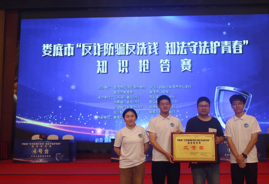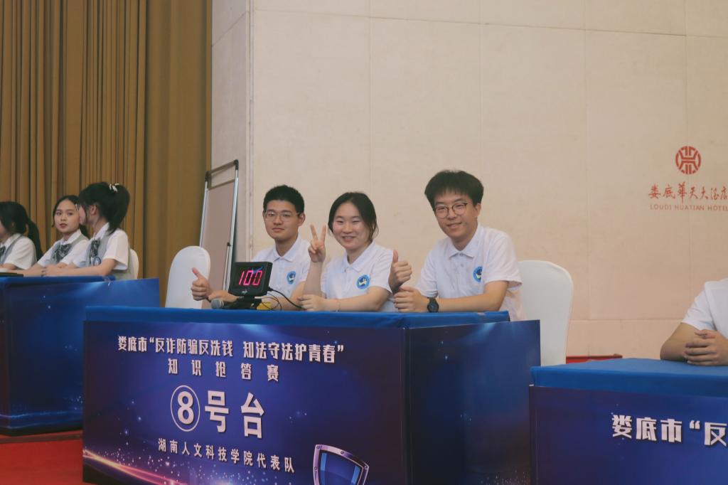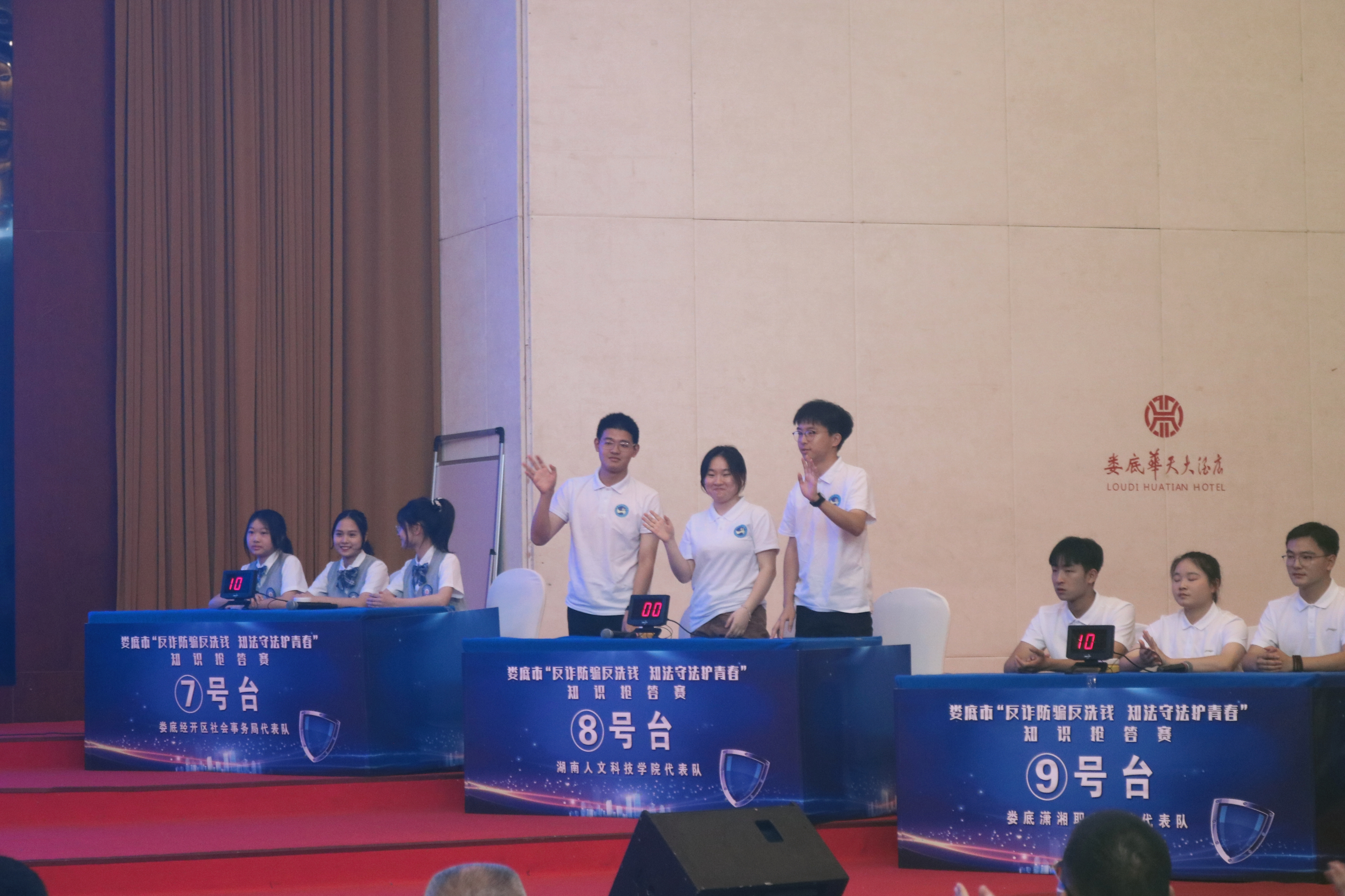 5月29日,KY官网代表学校参加娄底市“反诈防骗反洗钱,知法守法护青春”知识抢答赛。本次活动由党总支副书记刘景春带队,参赛人员为22级社工一班焦念祖、法学一班朱帅印、法学二班申薇稚。