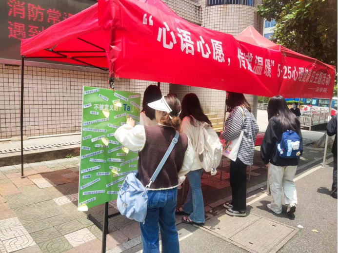 5月25日是全国大学生心理健康日。在5·25到来之际,法学院于5月24日和25日两天开展主题为“健康从心开始,生命因你绽放”的摆点活动,摆点地点为养根楼和海源广场。