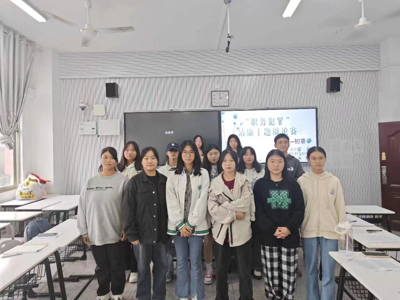 11月10日,KY官网学风建设月开展“廉洁建设重在预防还是惩治”主题辩论赛,辩论赛在致远楼202模拟法庭举行。法学院党总支副书记刘景春、学工办主任陈玲、辅导员羊哲思、廖俊宏出席。