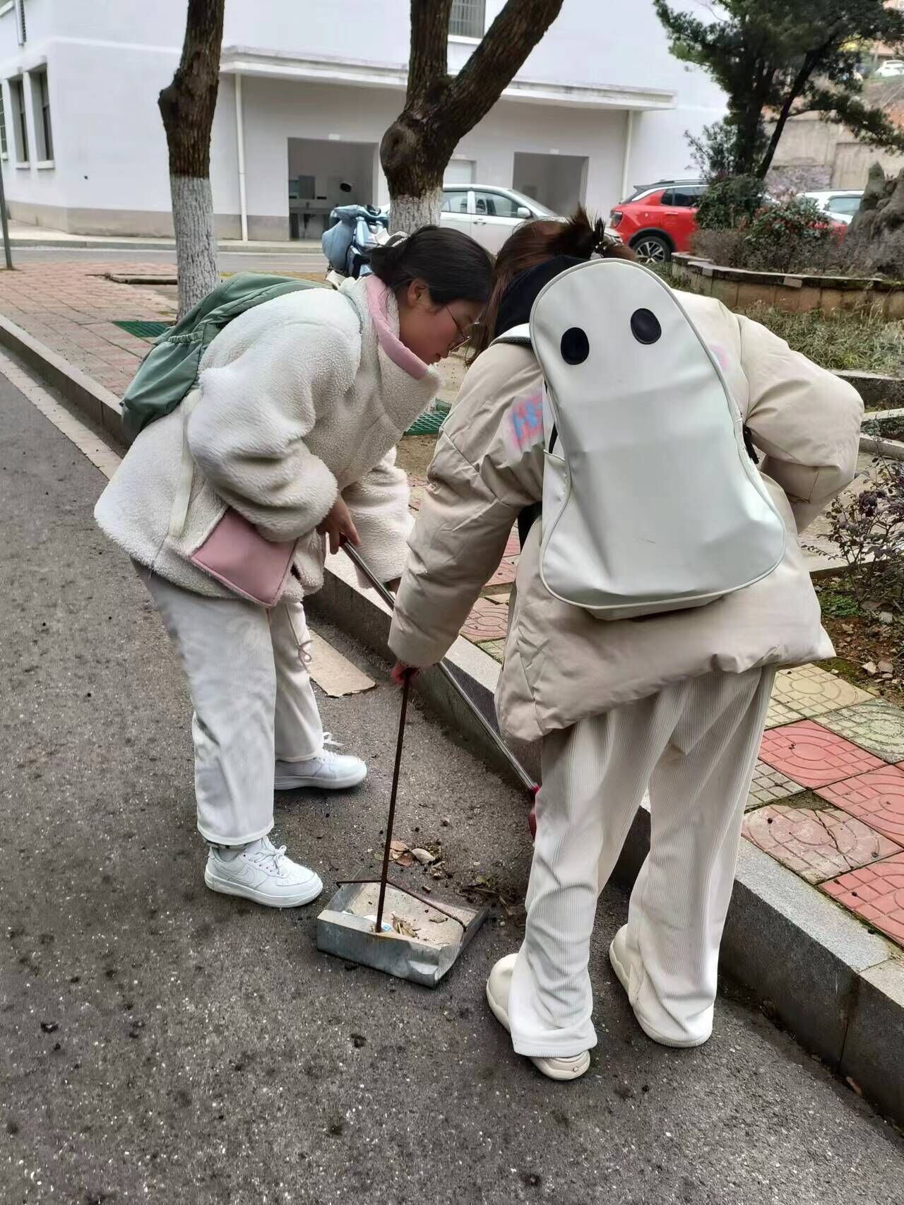 为了更好地迎接新学期、培养人文学子的劳动本领和自我奉献精神,2月27日上午,23级法学三班的学子们踊跃参加“守望花田”活动。同学们带着劳动工具在若谷楼前和女生宿舍八栋前方的街道上进行了校园卫生清理。