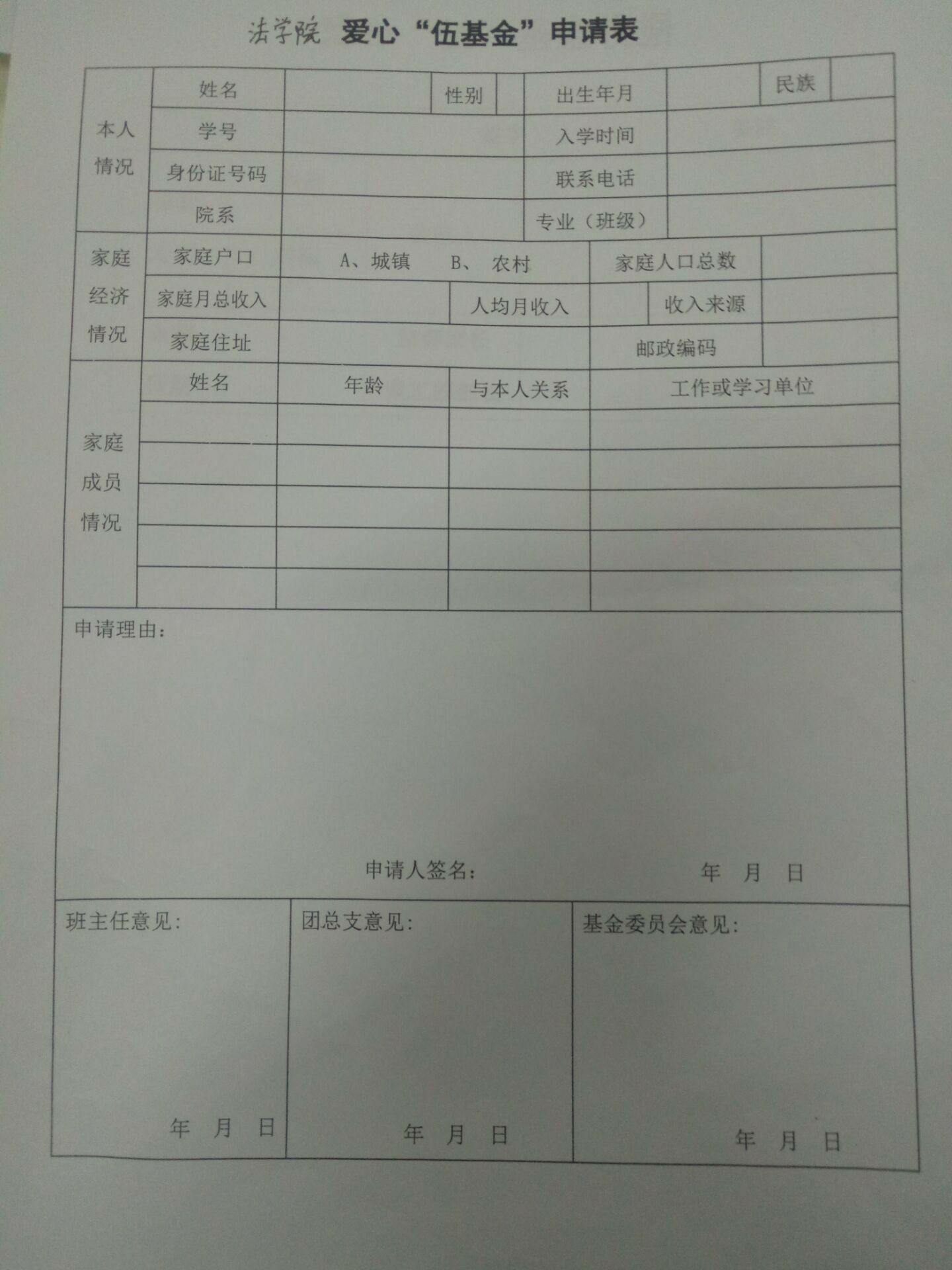 邹媛同学家庭条件困难,唯一的经济来源是在煤矿厂上班的父亲。母亲在4月22日不幸发生车祸,受到创伤,治疗费用较大。保险公司只能承担部分费用,因此向“伍”基金提出申请。在经过班主任、团总支、基金管理委员会的层级审核之后,法学院“伍”基金委员会决定向邹媛同学进行资助并将相关情况予以公布。