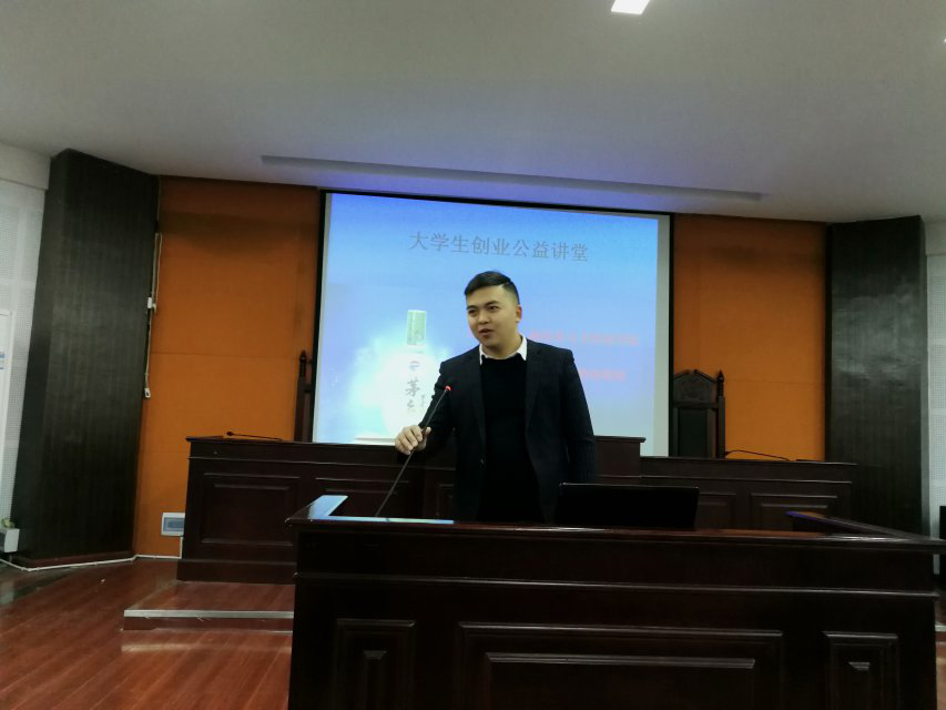 2017年12月6日即创新创业实践周第三天,法学院12级毕业生、茅台集团娄底经销单位总经理朱坤为大家带来关于创业指导专题讲座。与会人员有党总支书记尹钟宏、党总支副书记刘依归、辅导员刘惠婷及KY官网16级全体学生。