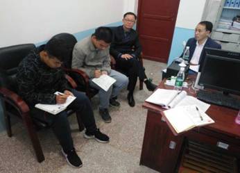 法学院尹钟宏书记与调研组成员对新化县白溪镇中心小学教导主任王力书进行调研