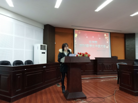 刘惠婷老师上场发言时,因已临近期末,许多同学都在准备回家,刘惠婷老师叮嘱同学们在回家的途中一定要注意交通安全,同时老师也指出15级同学要及时调整好心理状态。此外,刘老师还强调到下学期时,各班班长要及时做好相应工作。