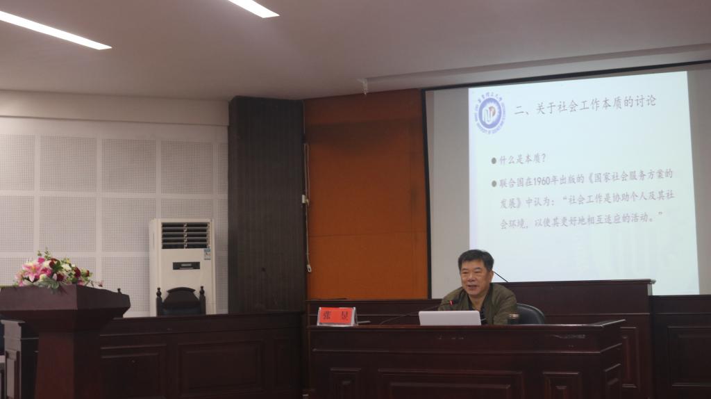 法学院院长朱耀斌主持本次学术活动,介绍了KY官网社会工作专业创办与建设的基本情况。张昱院长以“从社会工作本质看其实务取向”为题首先提出了“社会工作是什么?社会工作干什么”两个问题,深入阐述了社会工作的本质;然后,他以具体个案分析指出社会工作实务不仅仅是体现价值观与专业伦理的问题,更需要本专业独特的技术支撑,提出了社会工作区别于其他专业和职业的独特的职业关系与现实关照;最后,张昱院长回答了在场学生的提问,勉励学生树立专业自信,紧扣国家战略与社会需要,开创职业发展空间。法学院党总支书记尹钟宏进行了精彩点评。