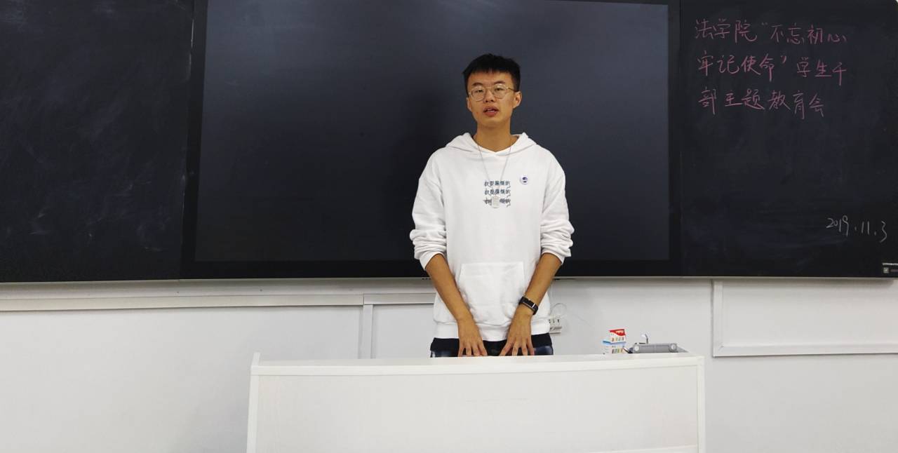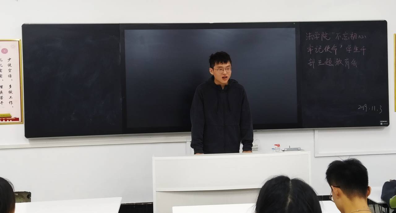 为了学习并贯彻“不忘初心,牢记使命”主题精神,法学院于11月3日在致远楼303开展“不忘初心,牢记使命” 学生干部主题教育会,参加该会议的有法学院学生分会主要学生干部,会议由学生分会主席全峻锋主持。