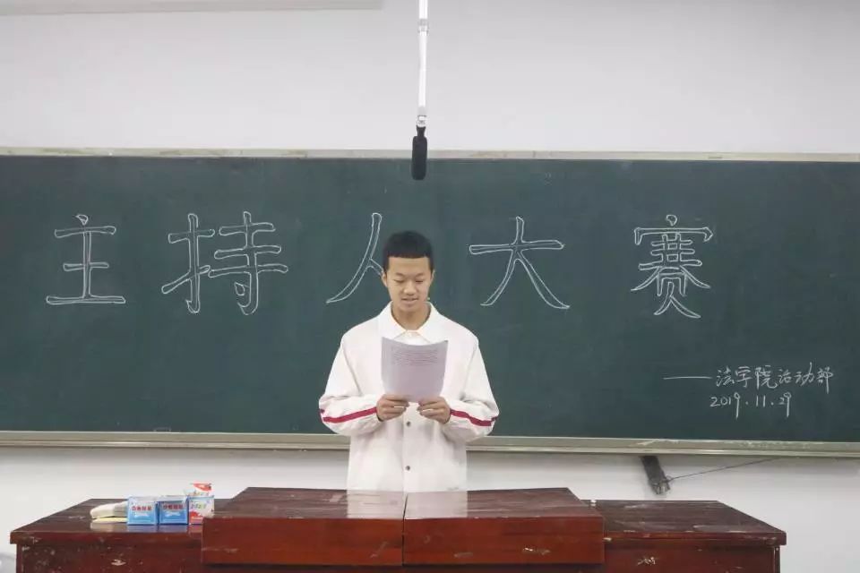 为了活跃校园文化氛围,彰显法学院学生风采,体现大学生的青春活力,挖掘主持人才。2019年11月29日,法学院主持人大赛初赛于致远楼210教室举行。