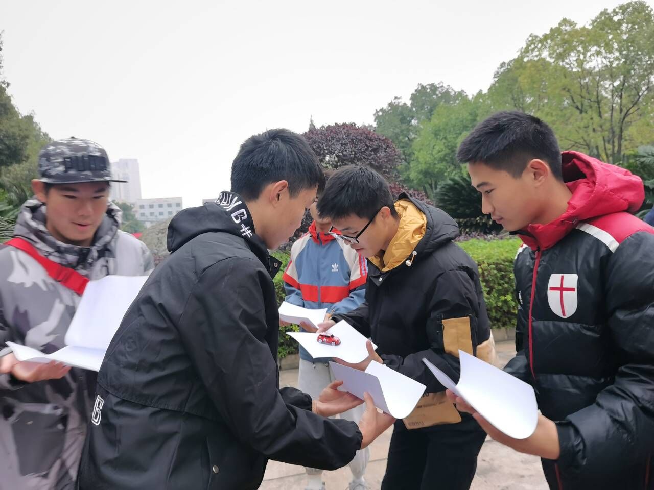 在评委宣读完比赛规则后,比赛正式开始。在“云霄飞车”比赛中,选手们团结一致,永不言弃,依次用A4纸接力将小车送往终点;在“智力空间”比赛中,选手们积极探讨,认真解谜,争取获得更多正确答案;在“象棋翻翻翻”比赛中,选手们相互配合,认真探索,在海园广场上努力寻找象棋的踪影。