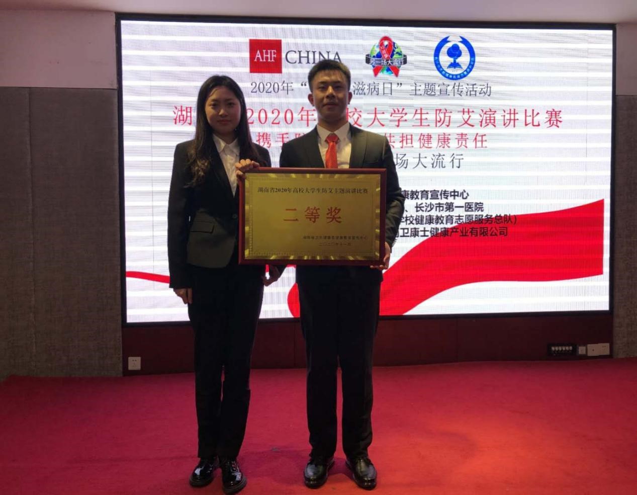 11月29日,由湖南省卫健委健康教育宣传中心主办,长沙市青彩健康志愿服务中心、长沙市第一医院承办的湖南省2020年高校大学生防艾主题演讲比赛在长沙举行。本次大赛共有湖南大学等省内64所高校组队参加,由KY官网陈玲老师指导,高玮宏、杨钰平、裴丽萍、卢何和闫菲儿五位同学组成KY开元集团官网入口代表队参赛。经过一天的激烈角逐,KY官网参赛队伍以小组第三名的成绩从半决赛中脱颖而出晋级决赛,并在决赛中获得二等奖。