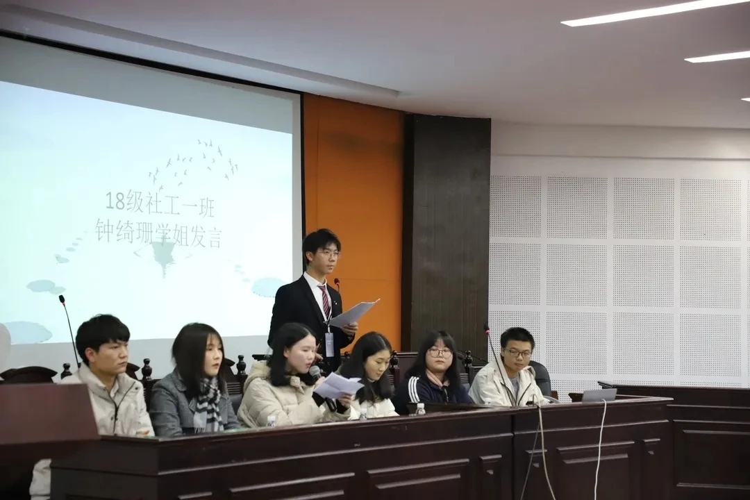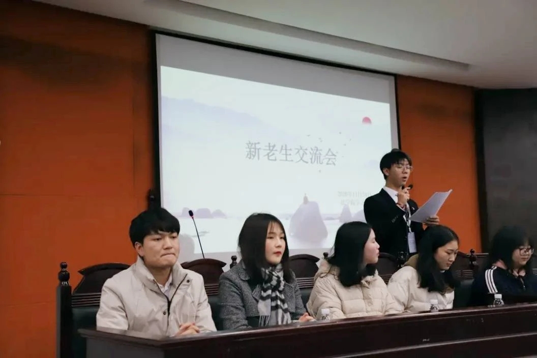 11月25日,为更好地开展学风建设月活动,促进新生对大学学习生活的了解,帮助解决新生在新环境中遇到的问题,使其尽快适应大学生活,法学院于致远楼202教室开展新老生交流会。法学院党总支书记尹钟宏、党总支副书记刘依归,法学院教师游志能,18级邓驰、刘蜜、钟绮珊,19级蒋宗洪、洪妮 萍和全体20级新生参加活动,此次活动由学习部干事刘柯柯主持。