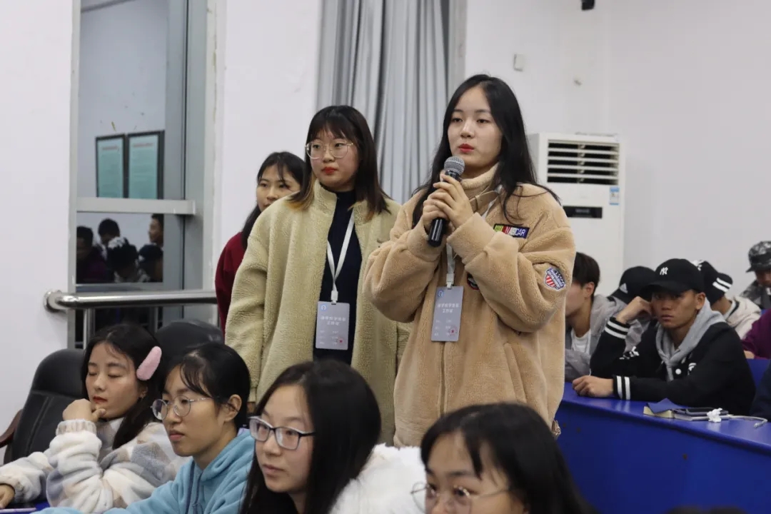 在新生自由提问环节,新生针对大学学习方法、工作与学习的冲突、大学生活和专业就业前景等方面提出疑问,在座的18级、19级学长学姐一一给予了细致的解答。新老生交流会在融洽和谐的氛围中圆满结束。