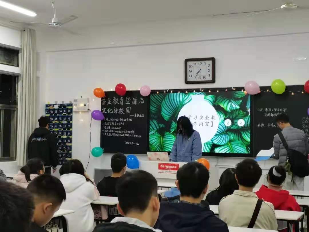 此次班会同学们认真学习了安全教育知识与廉洁文化知识。班会强调注意宿舍的用电安全,还强调了疫情防控、财产安全等方面内容,并介绍了廉洁文化的相关代表人物,希望同学们向廉洁榜样学习,弘扬廉洁美德。在此次班会中,20级各班都把教室布置得十分精美,利用装饰物和PPT烘托班会氛围。同学们以积极学习的态度对待班会,主动参与班会中的互动活动。另外,还有许多同学自愿加入班会的准备活动及收尾工作,为班会的顺利开展提供保障。会后,同学们相互分享廉洁故事、监督提醒做好安全工作,本次班会取得良好效果。