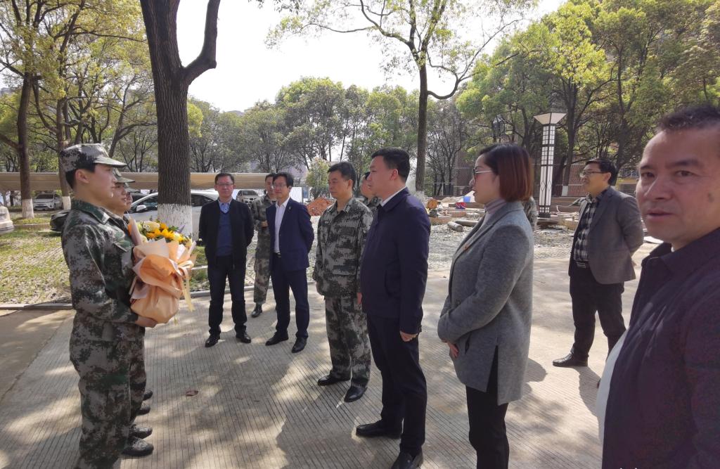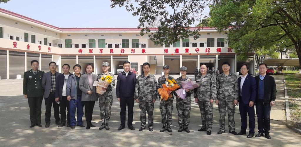 3月25日上午,副校长曹鑫率武保处郑秀星处长、周梁科长,以及法学院尹钟宏书记、朱耀斌院长、刘依归副书记,数学与金融学院刘晔副书记,材料与环境工程学院李星奇副书记一行赴娄底军分区看望2021年征兵入伍的女兵。