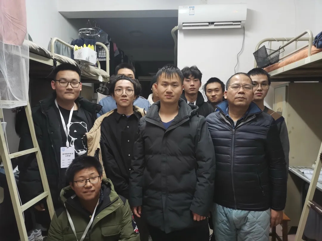 尹钟宏书记前往士光苑14栋,检查了寝室是否存在违规电器等安全问题,他指出了寝室存在的一些安全隐患,告诫同学们保管好自己的贵重物品,不仅要保护自己,注意宿舍安全,也要注意财产安全。尹书记重点强调了安全用电及自我保护的重要性,并以近期发生的一些安全事故为例来警示同学们。三位辅导员老师也在查寝过程向同学们介绍了违规电器的潜在危害及冬季安全用电的方式,希望同学们能提高安全意识。王演兵老师提醒同学们注意冬季天寒时空调的使用并告诫同学们珍惜现在优良的宿舍条件,努力学习。吴仙桂老师还带领了同学们共读宿舍安全守则,加强自身防护意识。
