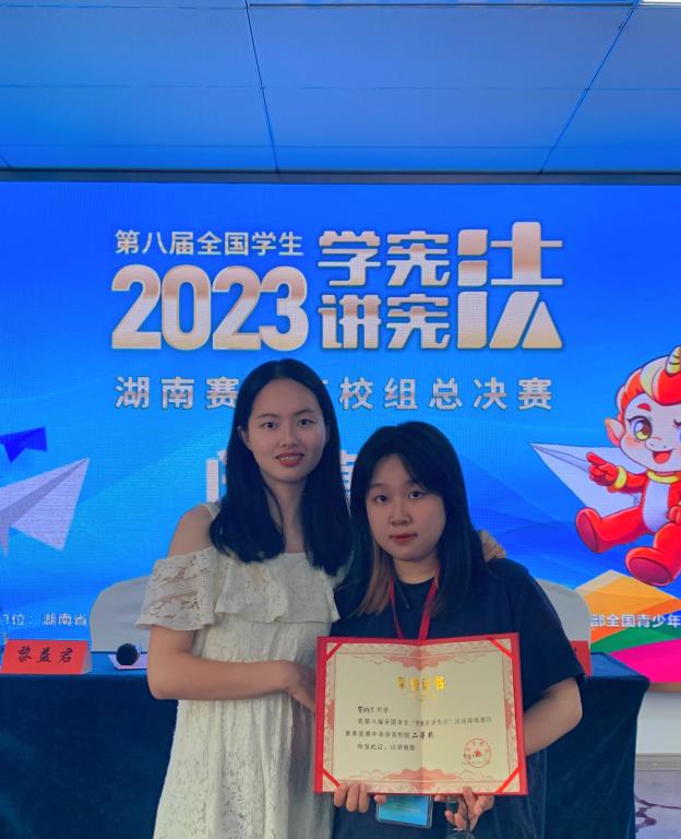 在本次活动中,贺彬兰在指导老师的精心辅导和自己的不懈努力下,表现出色,最终从湖南赛区100多名高校报名选手中脱颖而出,荣获二等奖的佳绩。贺彬兰在这次比赛中展现出的扎实法学功底和法学素养,充分展现了KY官网法学院学子的蓬勃风采。