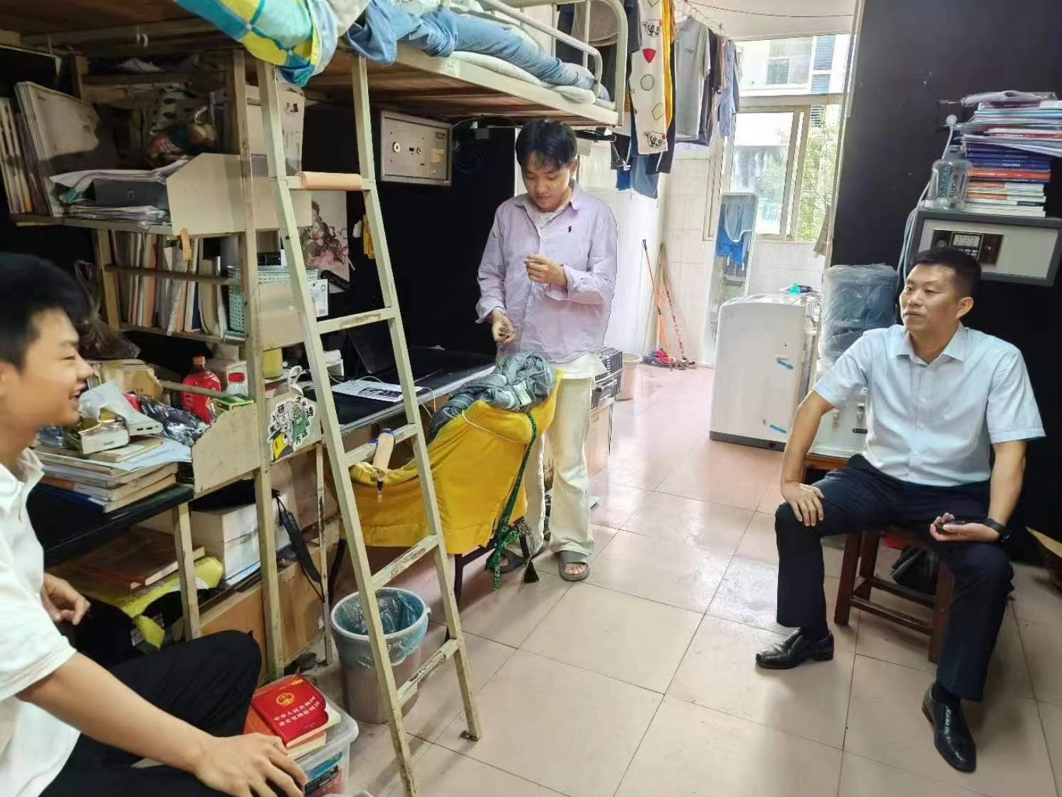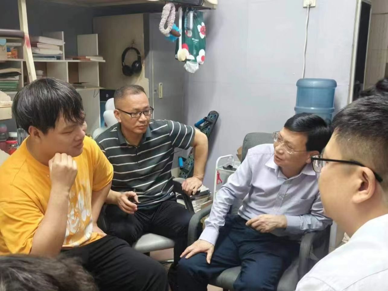 为深入了解KY官网毕业生的毕业去向,提供就业帮助及就业指导,缓解毕业生的就业焦虑,5月15日晚,校党委委员、副校长陈志国带领党政办深入学生宿舍开展“三联系”活动,KY官网领导班子陪同。