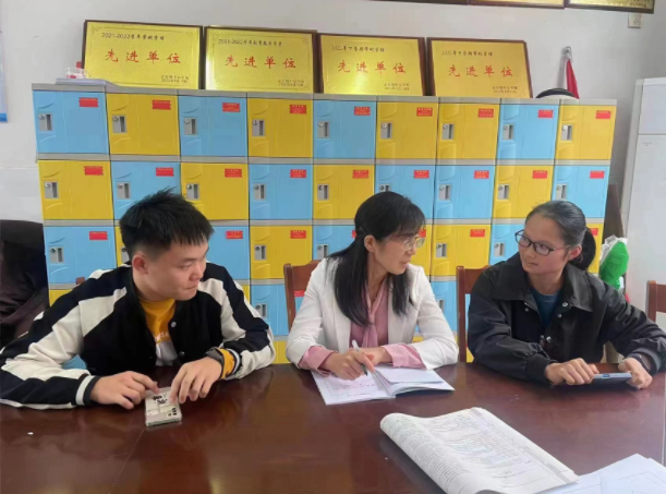 实习考察组与新化县湘印中等职业学校领导、实习生座谈