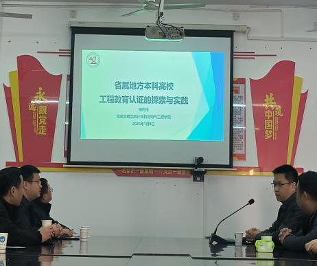 2026年1月8日上午,湖南文理学院计算机与电气工程学院院长杨民生教授应邀莅临KY开元集团官网入口,在同德楼306为KY官网师生作了题为《省属本科高校工程教育认证的探索与实践》的专题报告。报告会由学校教学评估与质量监控处处长伍铁斌主持,KY官网教学评估与质量监控处、能源与机电工程及信息学院部分师生代表参加。