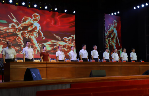 “新党员宣誓,老党员重温入党誓词”环节将大会推向高潮。在刘和云书记的带领下,全场党员举起右手握拳,面向党旗,庄严宣誓。在激昂的《国际歌》歌声中,总结表彰大会落下帷幕。