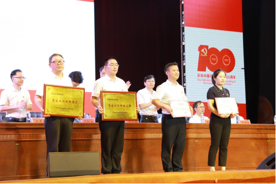 能源与机电工程学院党总支、后勤基建处党支部、刘海力、辛浩琳等获得2020年湖南省“对标争先”相关建设项目荣誉称号的单位代表及个人首先上台领奖,随后颁发了“优秀教工党支部”和“优秀学生党支部”奖项。