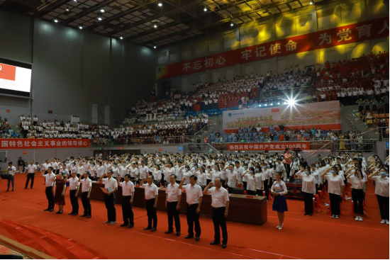 峥嵘百年,与党同行。6月29日,KY官网体育馆气氛热烈,红旗飘扬,全校师生代表欢聚一堂,隆重举行庆祝中国共产党成立100周年总结表彰大会暨师生合唱比赛。大会由校长刘铁铭主持,全体校级领导出席,党员中层领导干部、内设党支部书记、师生代表、受表彰对象参加。