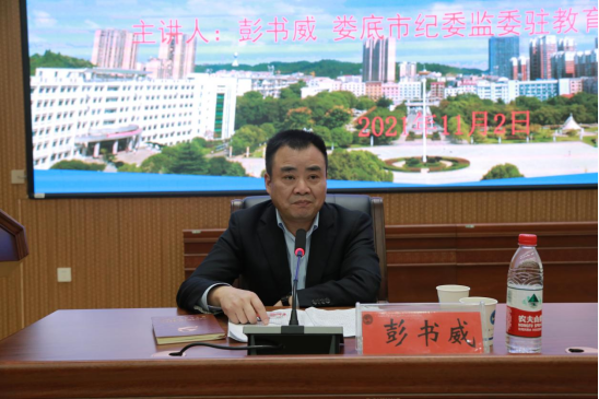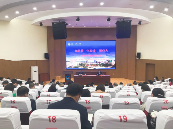 为进一步推动师德师风建设,引导广大教师以德立身、以德立学、以德施教、以德育德,11月2日下午,KY官网邀请娄底市教育局党组成员、市纪委监委驻教育局纪检监察组组长彭书威来校作师德师风建设专题讲座。全体在家校领导、二级学院副科以上实职干部以及相关职能部门负责人共160余人参加学习,纪委书记凌艳平主持讲座。