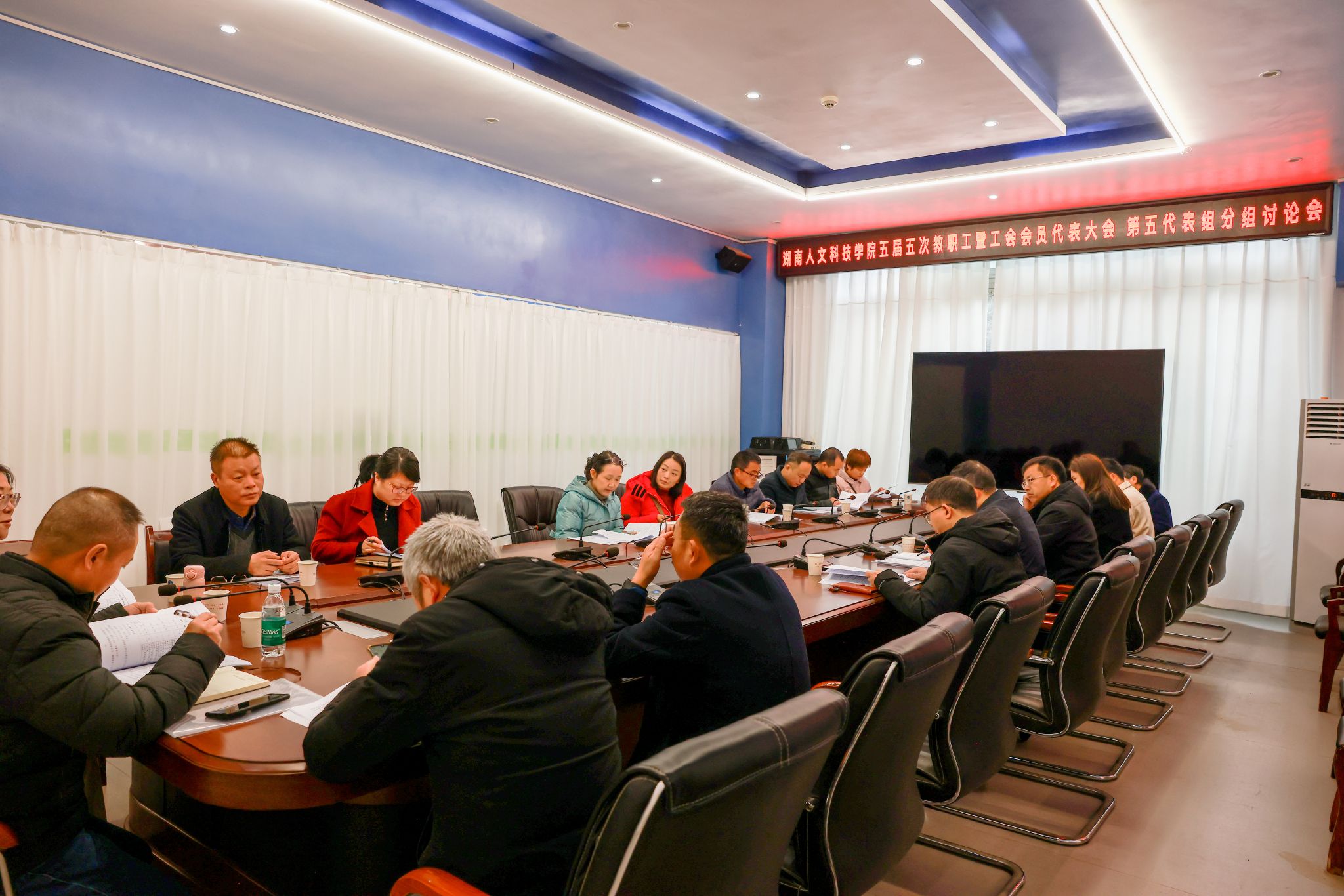 第三阶段,与会代表分组展开讨论。代表们以高度的主人翁精神,紧紧围绕学校发展与报告内容建言献策,为学校事业发展贡献智慧和力量。