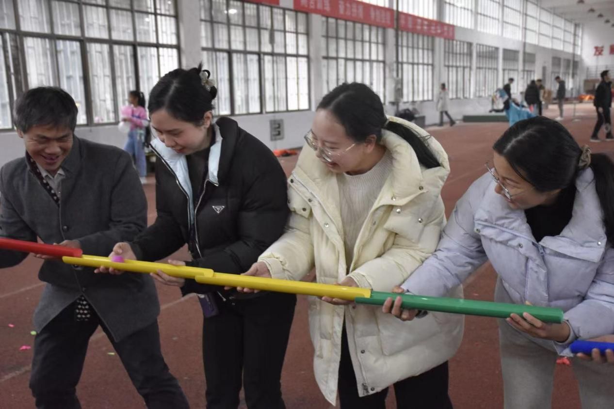 本次趣味运动会设置了“踩气球”、“珠行万里”、“极速60秒”、“摸石过河”等团体项目,既有趣味性,又能起到健身效果,更加注重团队配合。在简单的热身活动后,比赛正式拉开序幕。学院四个教研室通过抽签的方式组成超越队和超越超越队。两个队全心投入、团结协作,展现出了高度的默契和团队凝聚力。大家通过相互配合,充分放松自我,享受体育运动带来的乐趣。田径棚内气氛热烈,充满了欢声笑语。经过激烈的角逐,超越队取得了本次活动的最后胜利