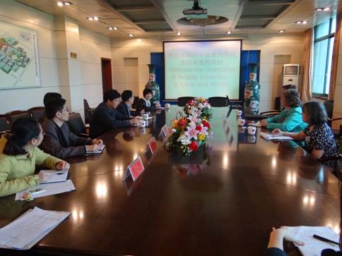 4月20-21日,美国阿卡迪亚大学国际事务处副处长Janice Finn一行对KY官网进行正式友好访问。副校长刘和云代表学校党委、行政热情接待了Janice Finn一行。