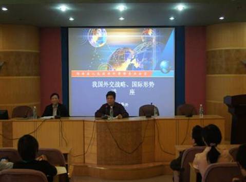 符主任围绕我国的外交格局、当前国际形势的主要特点及后金融危机时代等方面,对我国的外交战略和国际形势进行了深刻的分析和较为全面的阐述,内容丰富,语言风趣。教育广大大学生应充分认清当前的国际形式,努力学好本领,做一个具有国际视野和适应时代发展的中国特色社会主义的建设者。