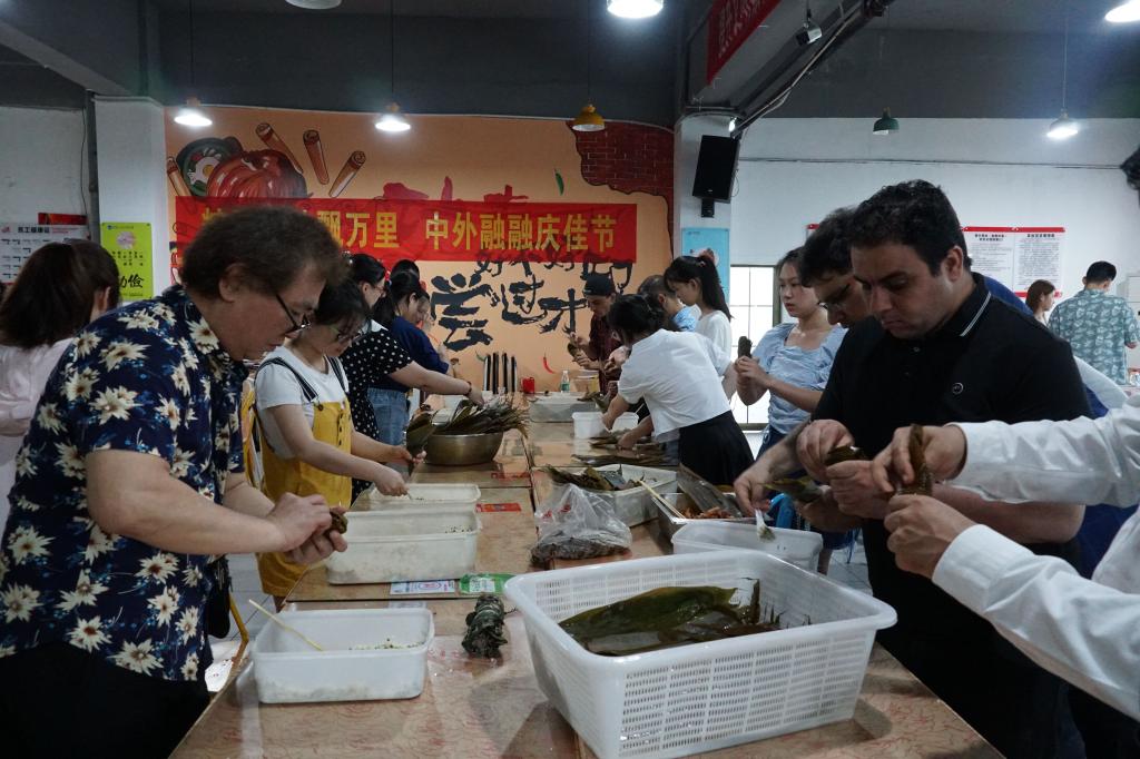 中国传统佳节端午节即将来临,为加强国(境)外人士了解中华优秀传统文化,增强中国传统节日的文化吸引力,感知中国共产党领导下人民群众生活水平的巨大提高,6月10日,国际合作与交流中心(港澳台办)组织了“粽香浓浓飘万里,中外融融庆佳节”端午节主题活动,副校长陈志国出席活动并致词,文学院院长倪正芳及部分教师代表,在校国(境)外专家、留学生代表,中外文化交流协会学生代表等50余人参加了本次活动。