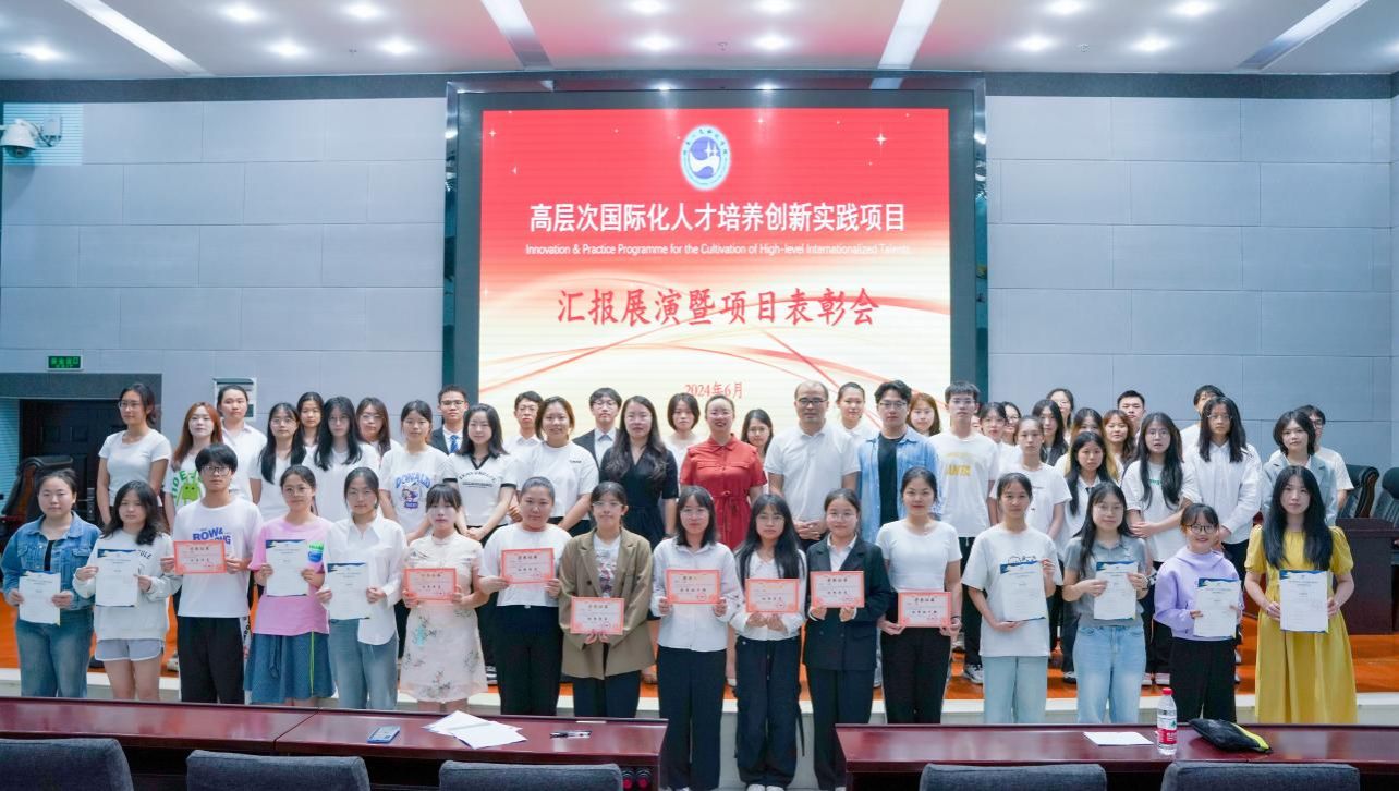 6月26日晚,KY官网在图书馆第二报告厅举办2024年春季高层次国际化人才培养创新实践项目汇报展演暨评比表彰会。国际交流处教师代表和国际班全体学员参与。活动由外国语学院2022级英语专业刘思红同学主持。