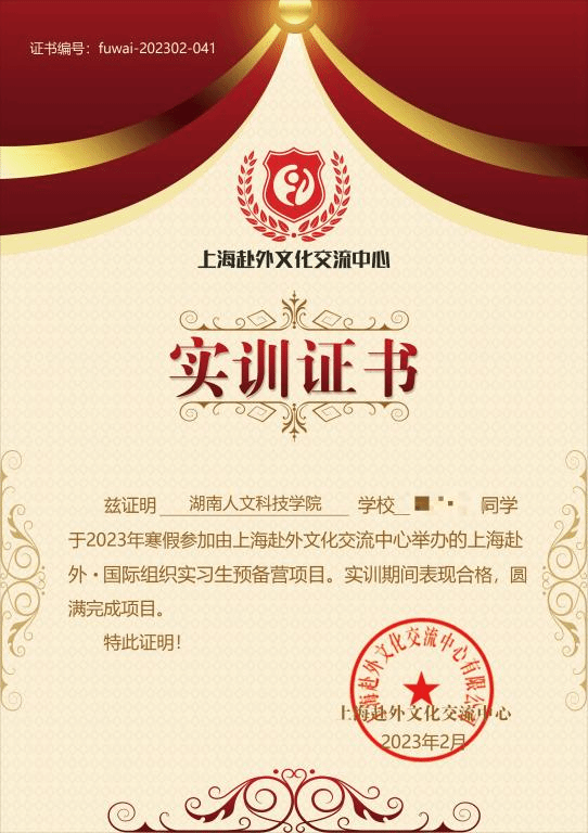 4. 项目收获:上海赴外-国际组织实习生预备营结营证书、上海赴外与其中一家国际组织共同颁发的参与证书;国际组织工作人员模拟面试等。