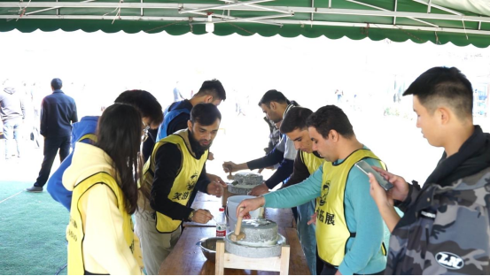 在拔河活动后,大家还体验了豆浆的制作过程,在磨盘上加入粒粒黄豆,辛勤劳作后,变成了可口的豆浆。在一片欢声笑语中,活动圆满结束。