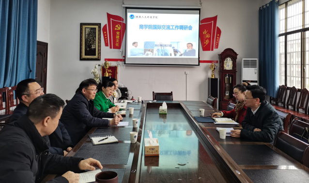 2月23日上午,党委委员、副校长陈志国到商学院调研指导国际交流工作,国际合作与交流中心主任黄敏陪同,商学院领导班子参会。